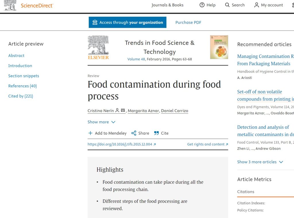 Food contamination can come from different situations. A wide overview is presented in this paper, where the different steps applied to food, from the reception of raw materials to the final food intake by consumers, are shown.