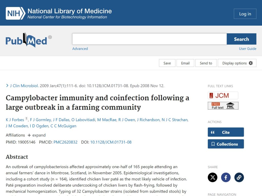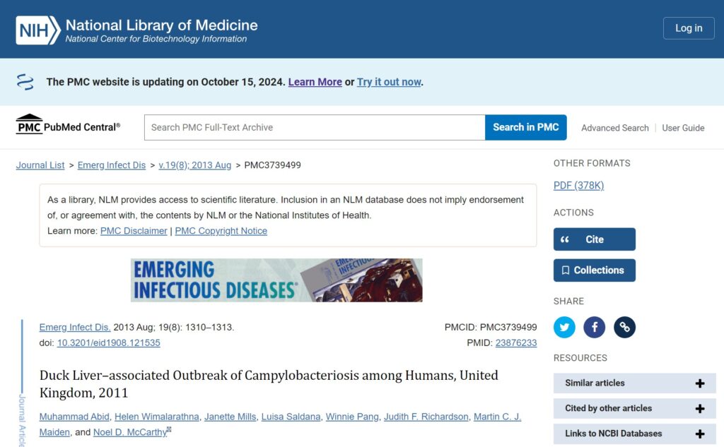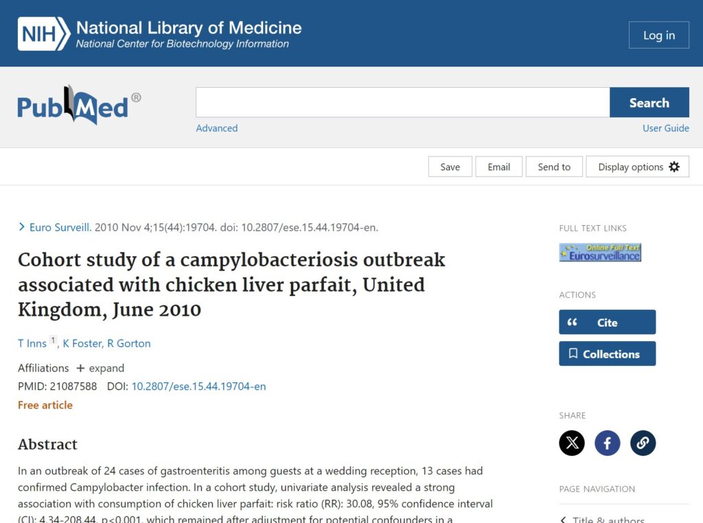 Cohort study of a campylobacteriosis outbreak associated with chicken liver parfait, United Kingdom, June 2010